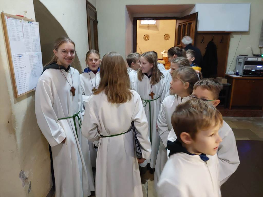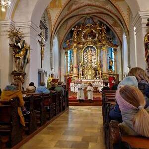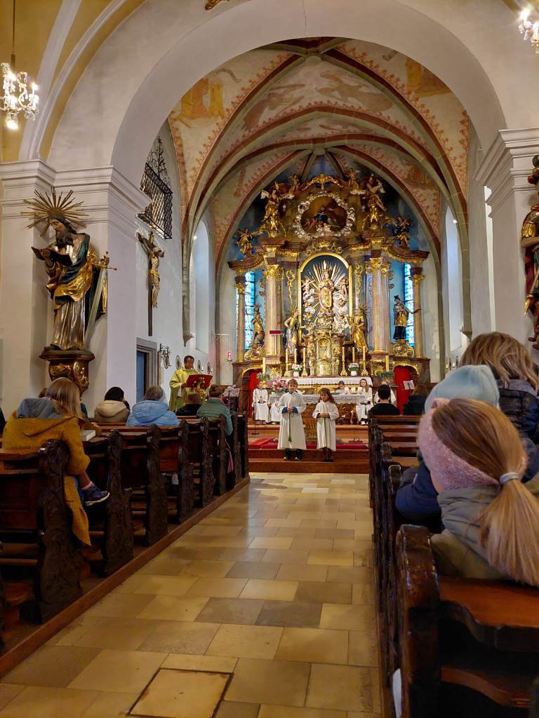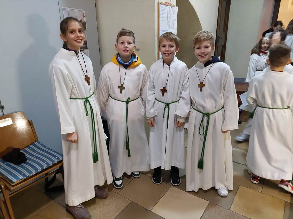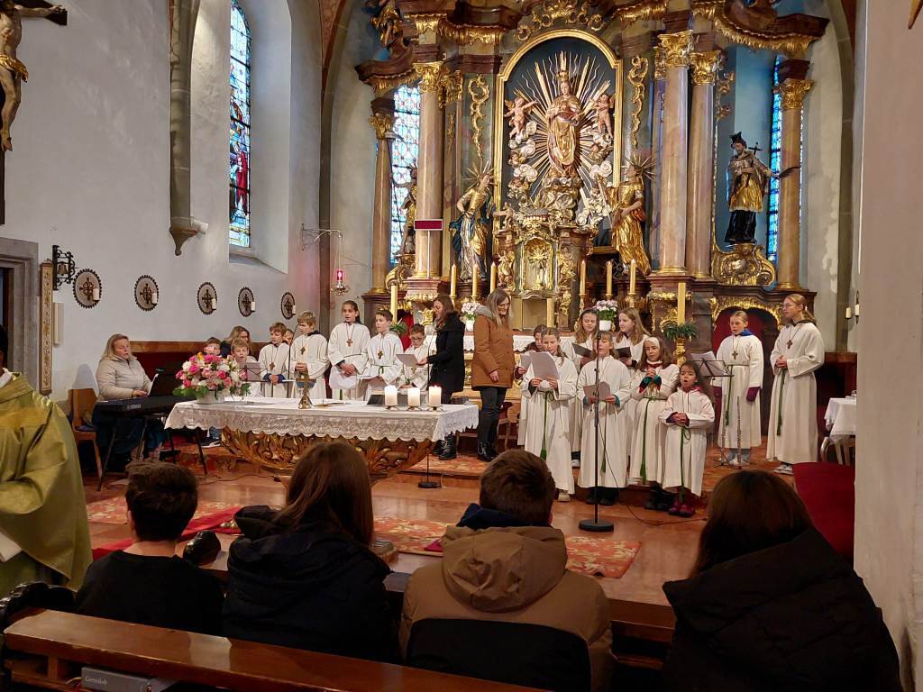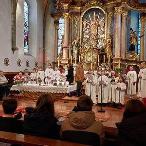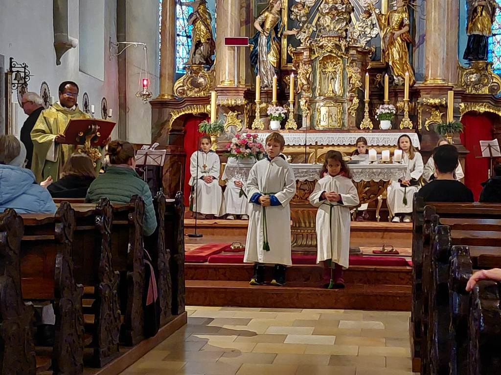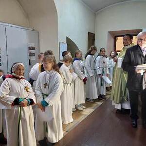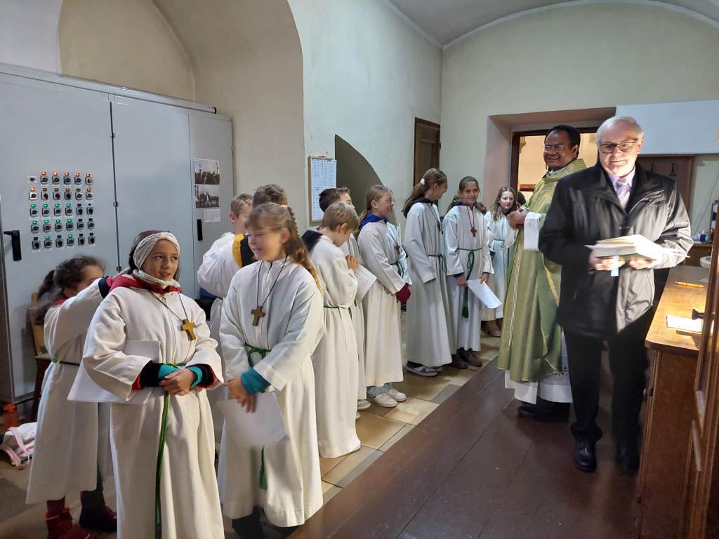 Der Gottesdienst wurde verbunden mit der Aufnahme der neuen Ministranten. Zugleich wurden auch jene Ministranten verabschiedet, die ihren Dienst beendet hatten. Die Messe wurden von den Minis gestaltet. Im Anschluß der Messe wurden ihnen ein kleines Geschenk überreicht.